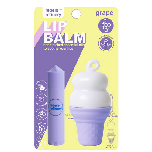 Function meets design with the rebels refinery ice cream-shaped lip balm. The highest coconut and sweet almond oils moisten, nourish and protect while Vitamin E provides essential antioxidants. Please be warned of lip balm evenly its real and its coming for you. Free Of: Egg, Dairy, Mustard, Peanuts, Soy, Wheat Gluten, Tree Nuts.