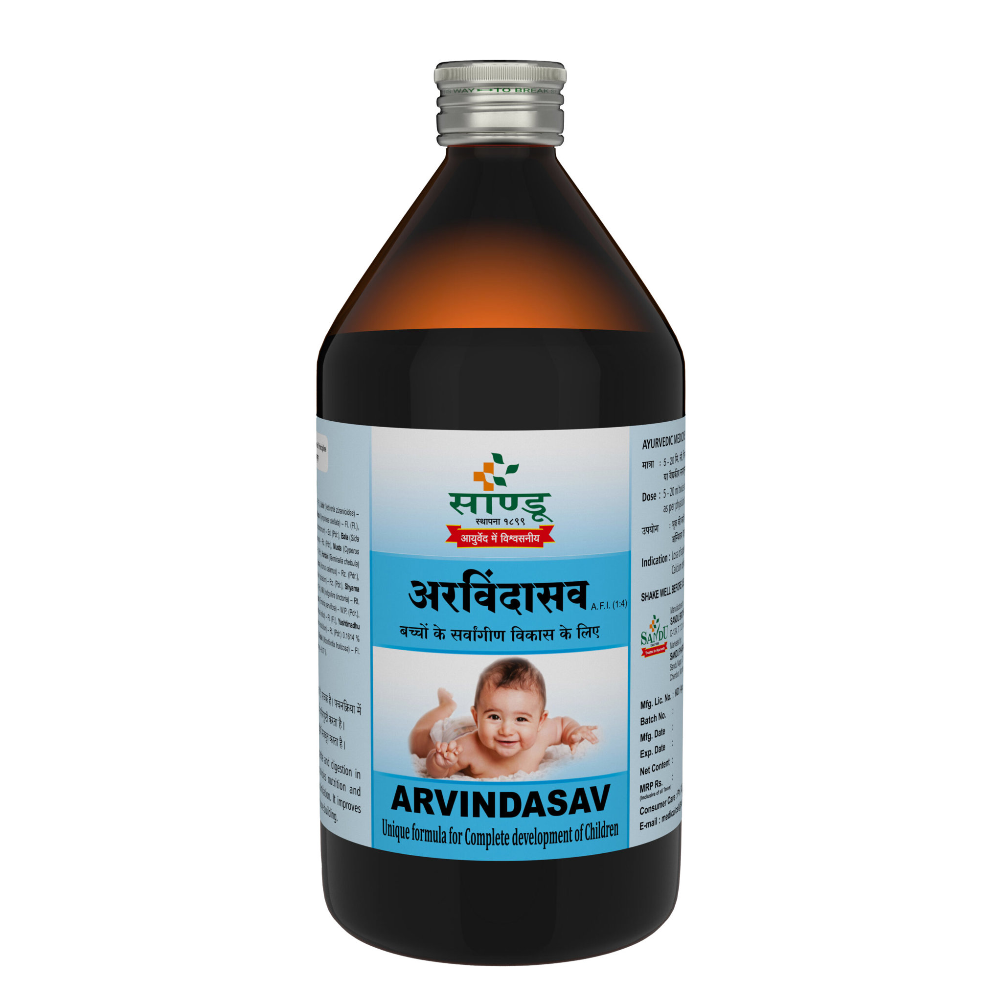 Sandu Arvindasav is a trusted Ayurvedic medicine beneficial in a wide range of diseases in children. It is a very good classical tonic for infants and children, which promotes proper growth and development of children.