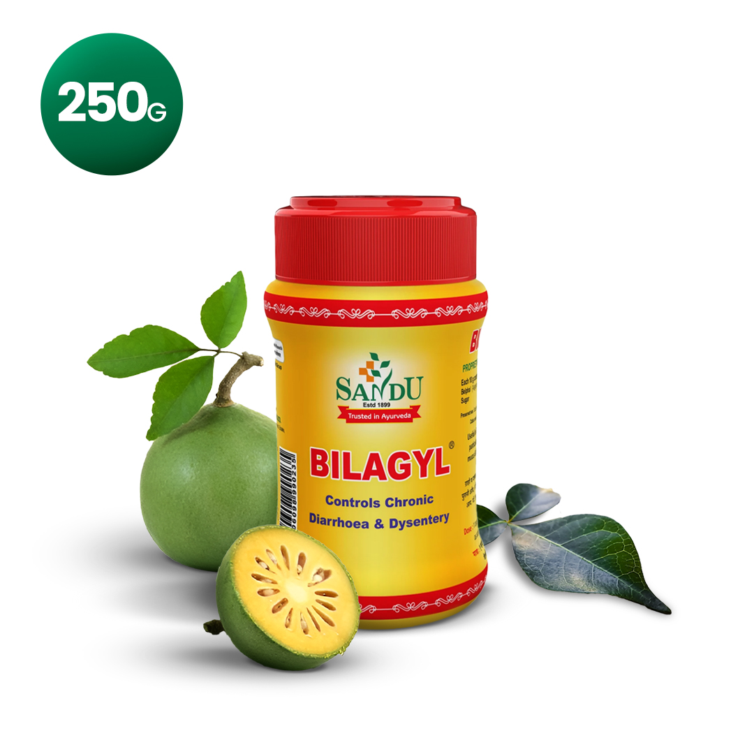 Sandu Bilagyl is a trusted Ayurvedic formulation designed to provide effective relief from chronic gastrointestinal issues such as diarrhea, dysentery, and Irritable Bowel Syndrome (IBS). Powered by Bael (Aegle marmelos) – a potent digestive herb – this remedy works holistically to help restore gut balance, support healing of intestinal mucosa, and improve overall digestive health.