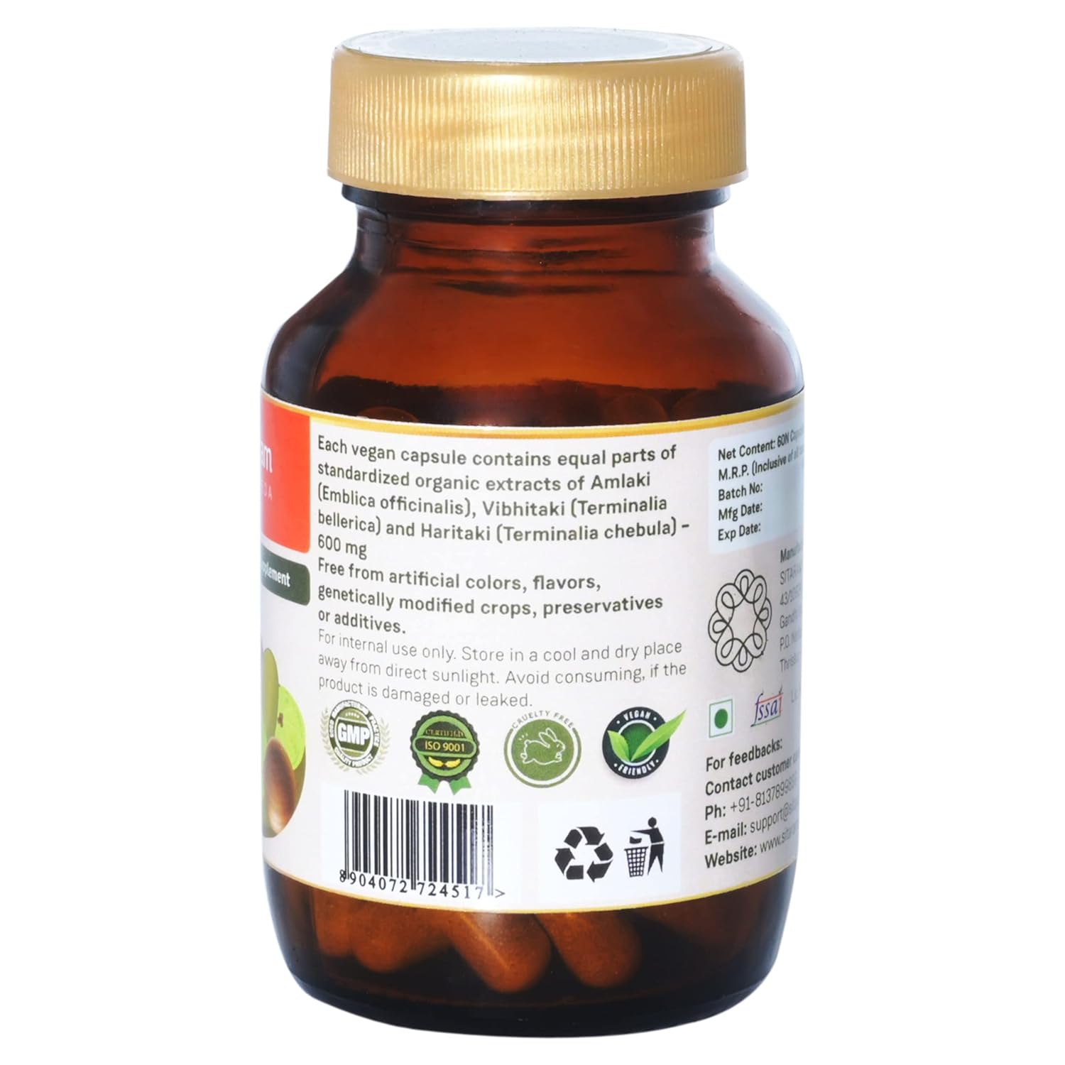 Take 1 to 2 capsules of Triphala daily, preferably before bedtime, or as directed by the physician.