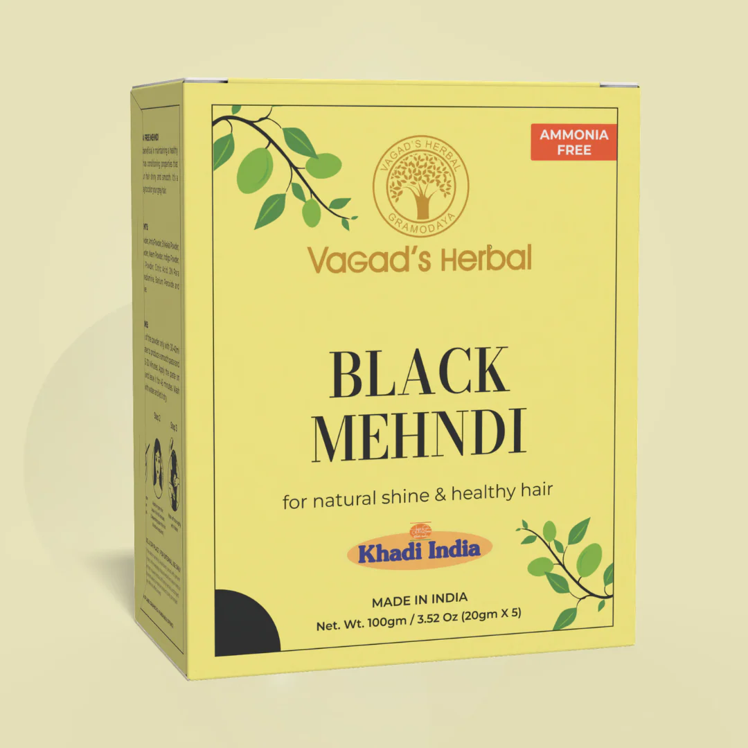 Reveal the allure of naturally black, lustrous hair with Vagads Khadi Herbal Black Hair Mehndi. Our herbal mehndi is meticulously crafted with a blend of potent herbs, providing a safe and effective way to enhance the color, shine, and overall health of your hair. Rediscover the age-old beauty secrets of herbal hair care with every application.